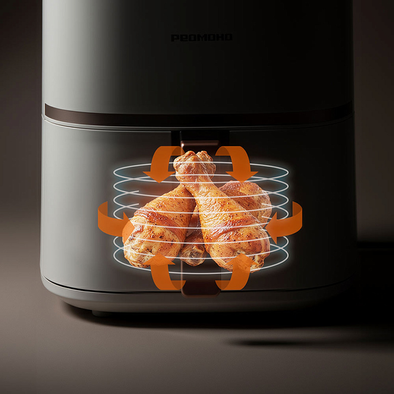 Технология Turbo Cycle обеспечивает циркуляцию горячего воздуха в камере на 360°, равномерно обрабатывая продукты со всех сторон. Это позволяет готовить в аэрогриле на 32% быстрее, чем в обычной духовке*, а также получать сочные блюда с хрустящей корочкой. Курица зарумянится равномерно, а овощи и котлеты одинаково пропекутся, независимо от их расположения в чаше.
