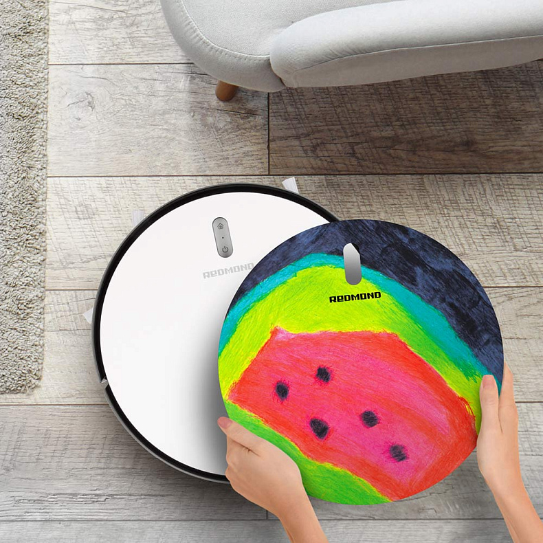 Съемная крышка от REDMOND (механизм запатентован) для RV-R630S превратит привычный робот-пылесос в оригинальный арт-объект. Верхнюю панель легко заменить, поэтому с внешним видом прибора можно экспериментировать.