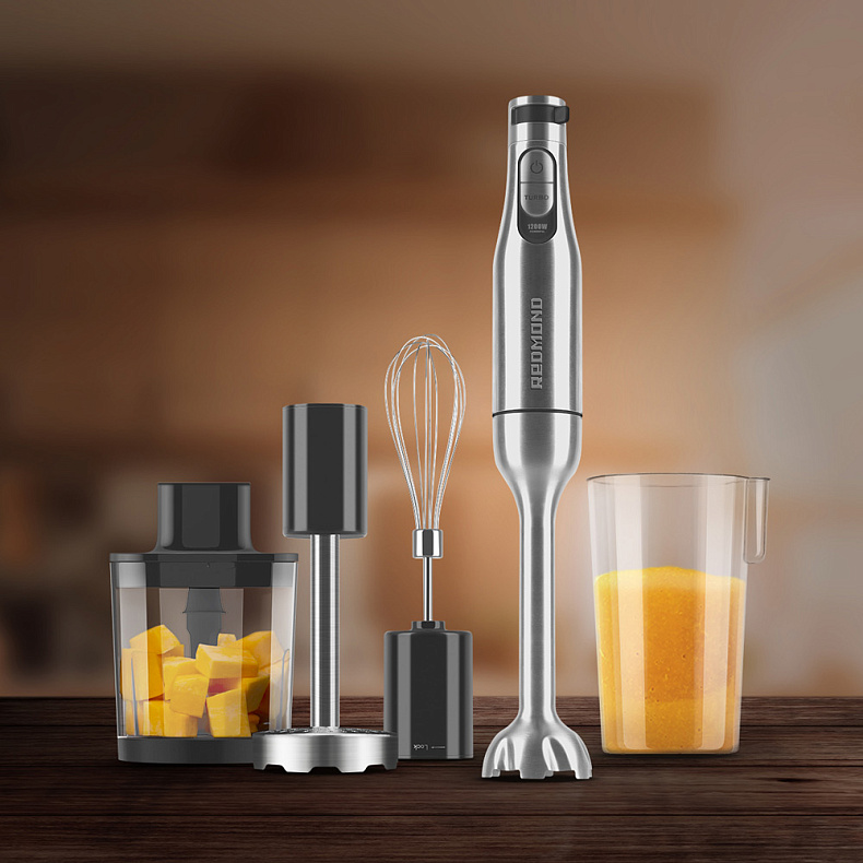 Отличный блендер в стальном корпусе и со стальными насадками. Он итак прослежит долго, благодаря надёжным материалам, которые в нём используются, так еще и он сделан под брендом Редмонд, а для меня это уже знак качества. Также в нём предусмотрено автоматическое отключение при перегреве, что также удлиняет срок его службы. Гарантия на блендер распространяется 1 год, пользуюсь пока 5 месяцев, всё устраивает. Ни разу не перегревался, с задачами справляется быстро. Особенно радует режим турбо, с ним смешать или измельчить  ингредиенты получается за секунды, поэтому с его появлением дома, я с легкостью и радостью смогла разнообразить питание. Нравится, что насадки стальные, это позволяет не высушивать их полностью, ведь они не поржавеют, да и они не гнутся и не ломаются под воздействием твердых продуктов. Блендер очень компактно размещается в шкаф, но так как я пользуюсь им уже ежедневно, то и на рабочей поверхности он не занимает много места. Поэтому считаю, что такой качественный и стильный прибор однозначно должен быть у каждой хозяйки для ускорения готовки и разнообразия блюд.