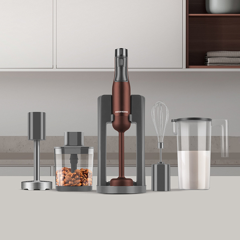 Блендер РЕДМОНД BH404 — компактный кухонный прибор 4 в 1 для обработки продуктов. Будучи альтернативой блендеру, миксеру, измельчителю и устройству для приготовления пюре, поможет вам на любом этапе создания блюда.