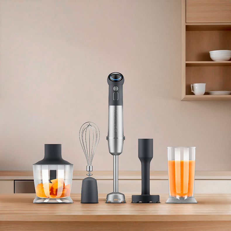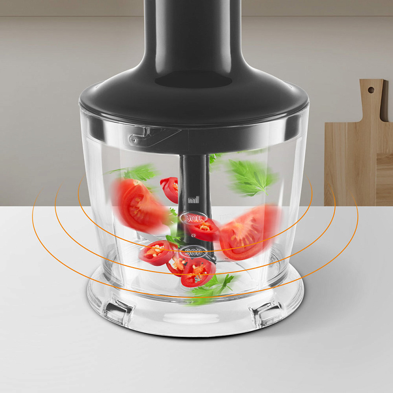 Блендер РЕДМОНД BH421 подходит для смешивания кремов, взбивания яиц, измельчения сырых овощей и приготовления пюре. Оснащен 4-лепестковым ножом для эффективной обработки ингредиентов. Скорость можно плавно регулировать, чтобы добиться идеальной текстуры. Режим «Турбо» поможет измельчить продукты до однородной массы без комочков.