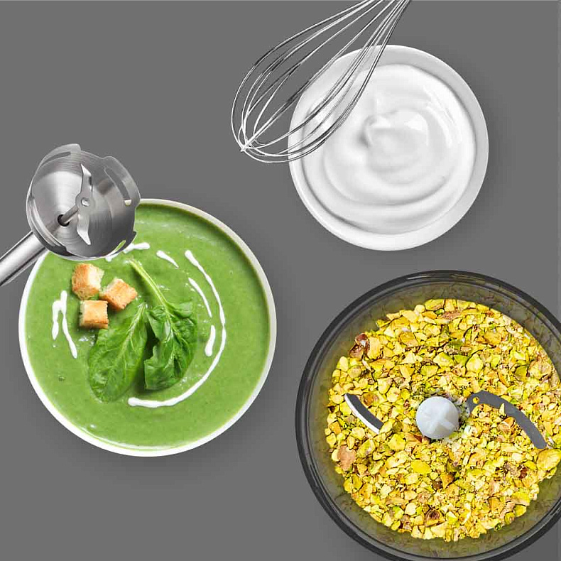 Блендер измельчает продукты со скоростью до 15 300 об/мин в турборежиме. Этого хватит, чтобы добиться однородной консистенции соуса или супа-пюре. Вы получите гладкую нежную текстуру без единого комочка.