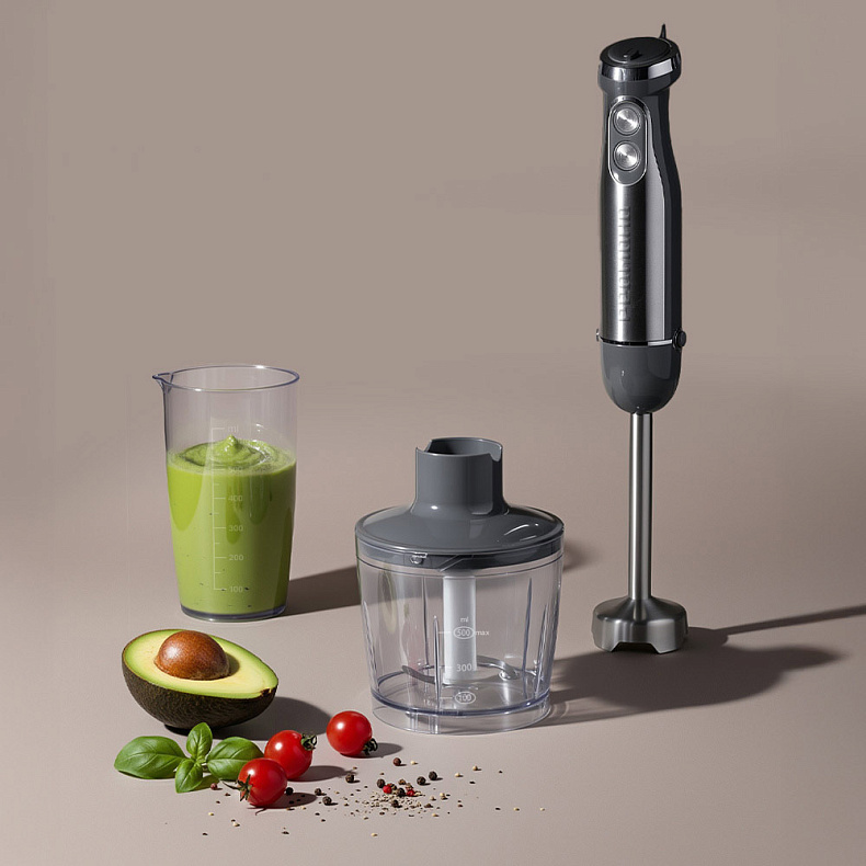 Блендер идеально лежит в руке и не скользит. Вы сможете без особых усилий выполнить любую кулинарную задачу: от простого смешивания до интенсивного измельчения.