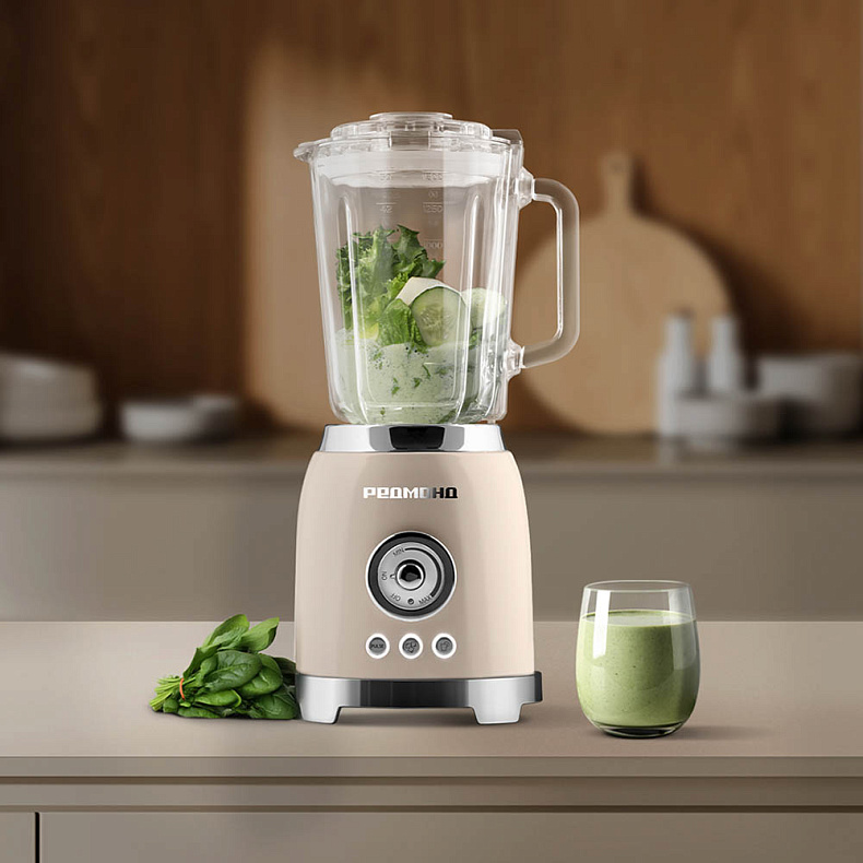Мотор блендера позволяет качественно обрабатывать продукты со скоростью до 20 000 об/мин. Вы сможете за несколько минут измельчить твердый сыр пармезан или быстро смешать ингредиенты для любимого соуса.