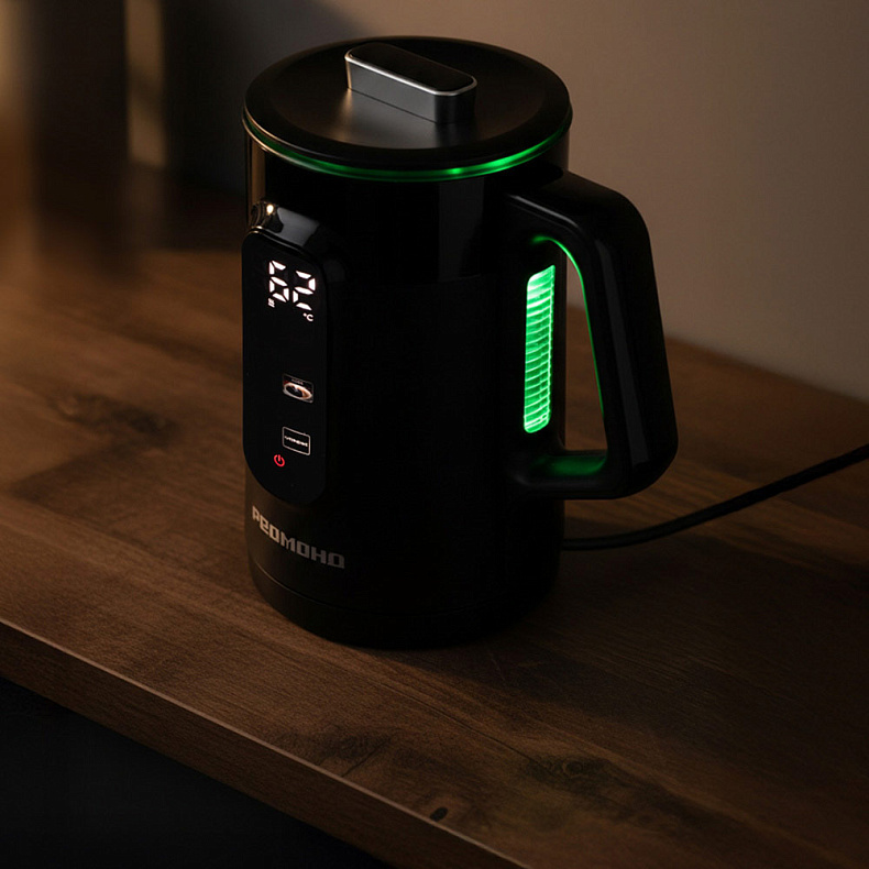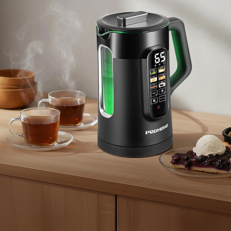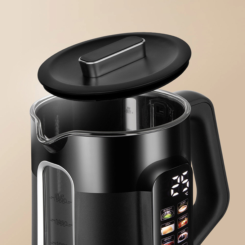Чайник позволяет точно выбирать температуру воды с шагом в 1 °C в диапазоне 35–90 °C — это удобно для приготовления детского питания и напитков, которые не должны быть слишком горячими. Функция поддержания температуры автоматически сохраняет выбранный режим до 12 часов, так что вода останется нужной температуры, даже если вы забудете про чайник.