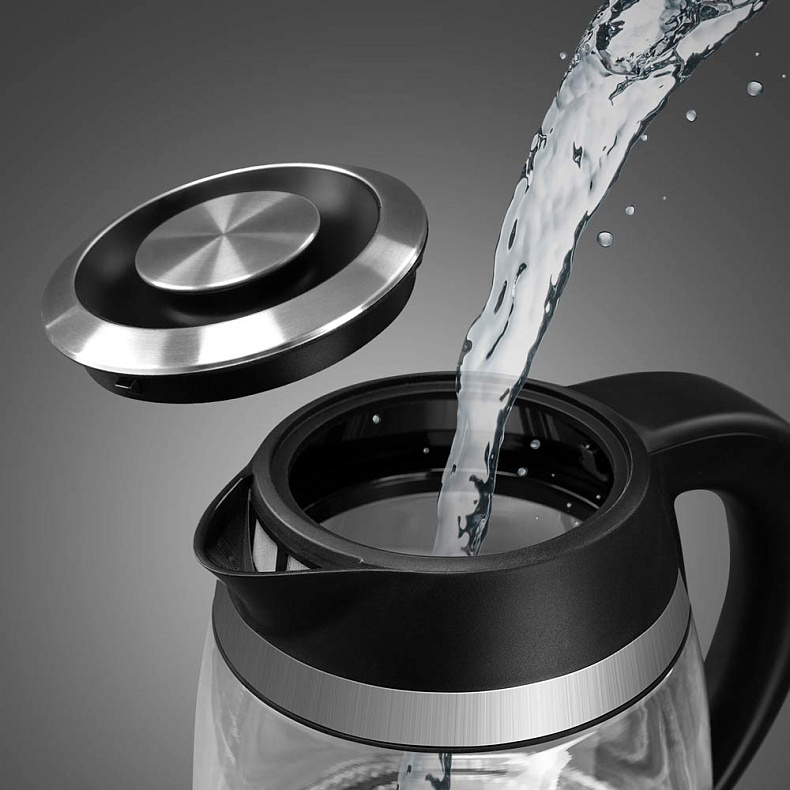 Крышка чайника снимается. Она легко моется и не мешает наливать воду в колбу. Съемная крышка долговечнее откидной, которая при частом использовании может сломаться.