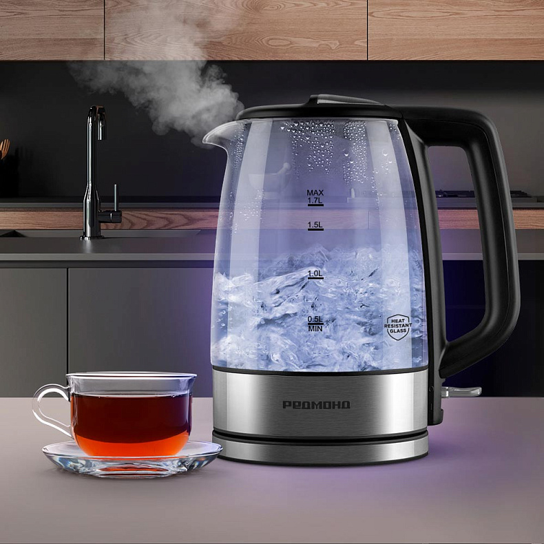 Вы сможете быстро приготовить напитки на большую компанию благодаря колбе объемом 1,7 литра. Столько воды хватит на 6–7 чашек чая. Поможет сэкономить время на бытовых хлопотах и с достоинством принять гостей.
