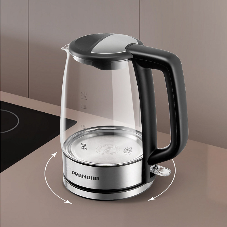 Прибор одинаково прост в использовании и для правшей, и для левшей благодаря удобной подставке. Чайник прочно на ней стоит и может вращаться на 360°.