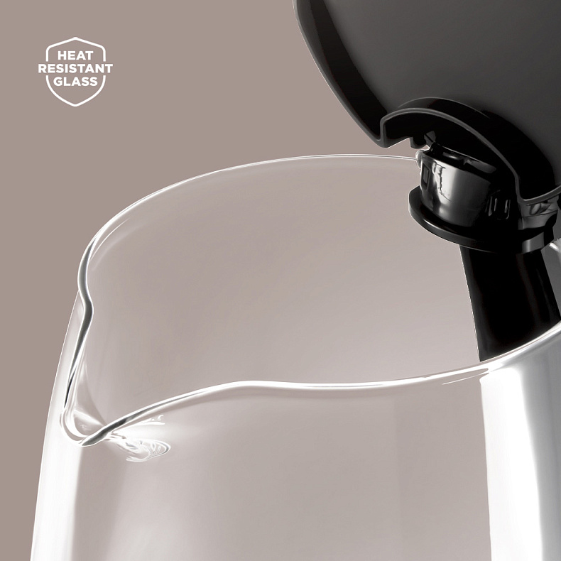 Чайник выглядит оригинально за счет голубой LED-подсветки. Добавьте своему интерьеру индивидуальности благодаря мягкому голубому свету и превратите заваривание чая в настоящую эффектную церемонию. Свет также позволяет наблюдать за работой прибора даже в темноте.