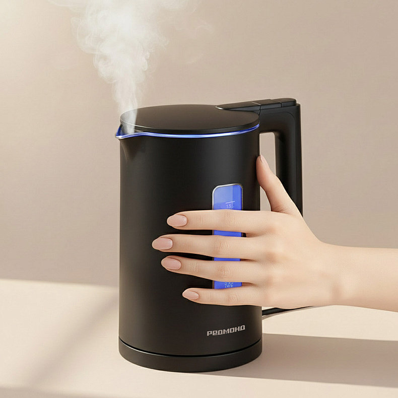 Двойные стенки корпуса эффективно удерживают тепло внутри, при этом внешняя поверхность остается прохладной. Даже при максимальном нагреве устройство не обжигает руки — это делает использование комфортным и безопасным для всех членов семьи, особенно если в доме есть дети.