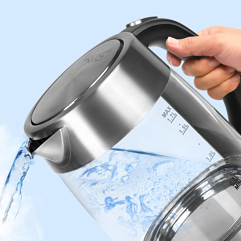 Чайник подойдет для одного человека или семьи. Объема 1,7 литра хватит на 6–7 чашек. Вы сможете угостить чаем всю семью или компанию друзей за один цикл работы.