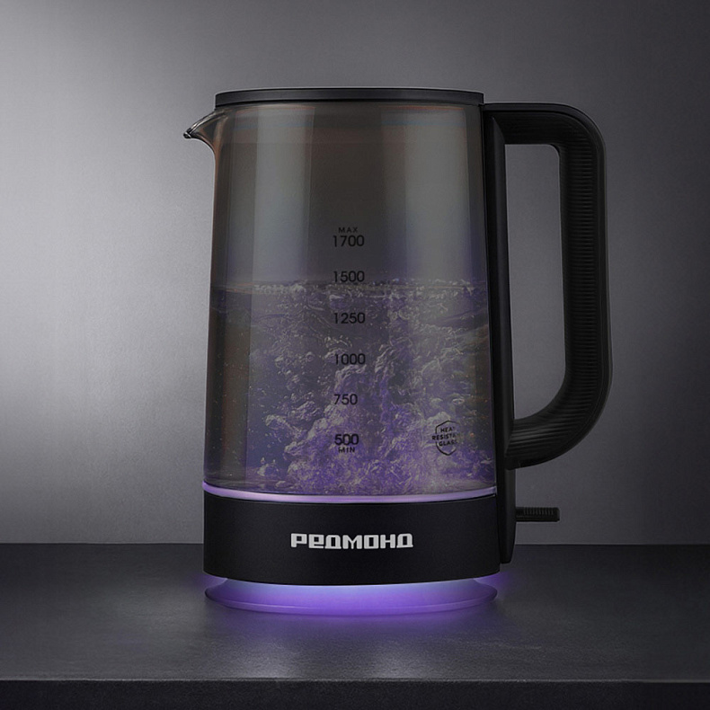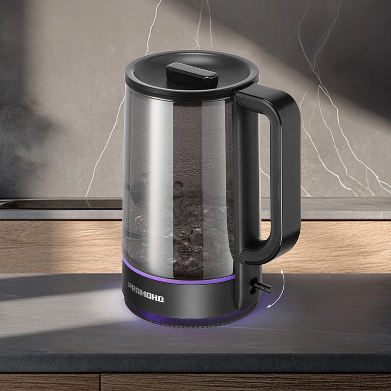 Уникальная колба с тонированным стеклом придает чайнику особую элегантность и визуальную легкость. Контурная подсветка с парящим эффектом создает мягкое свечение, делая процесс кипячения воды по-настоящему завораживающим. Подсветка подставки и основания колбы подчеркивает легкость и утонченность чайника. Такой дизайн идеально впишется в современный интерьер и подчеркнет вкус владельца.