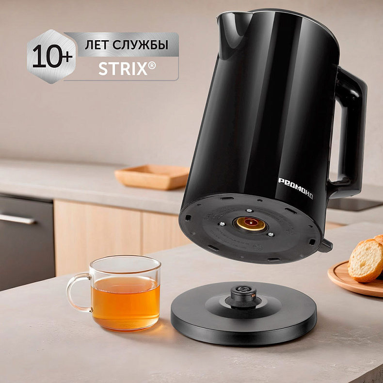 Гарантирует безопасный нагрев. Контроллер британской компании Strix® выключит чайник при закипании и отсутствии воды, а также при снятии устройства с подставки.