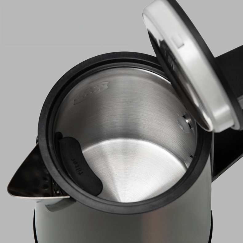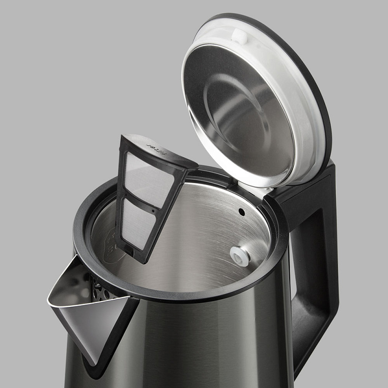 Жесткая вода не испортит напитки благодаря съемному фильтру. Он защитит воду от накипи и неприятного металлического привкуса. За конструкцией просто ухаживать: достаточно снять фильтр и промыть под проточной водой.