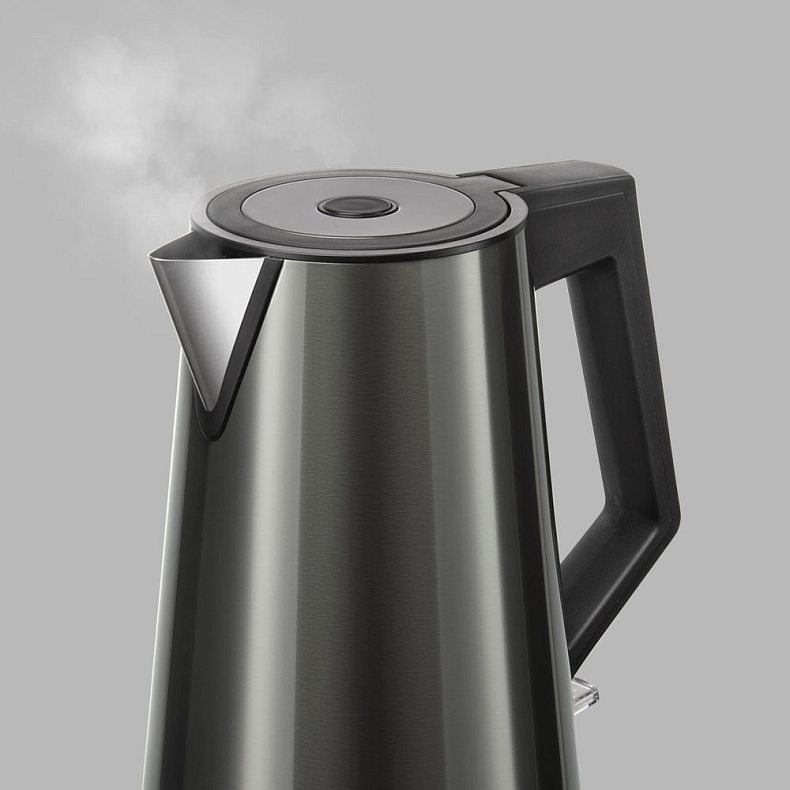 Чайник имеет двойные металлические стенки. Между ними остается воздушная прослойка, которая создает эффект термоса и не позволяет воде долго остывать. Внешняя поверхность не нагревается — при случайном прикосновении к чайнику нельзя обжечься.