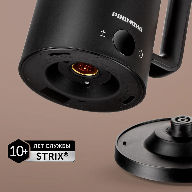 Чайник оснащен контроллером компании Strix®, ведущего производителя контактных групп из Великобритании. Он защищает устройство от перегрева и короткого замыкания.