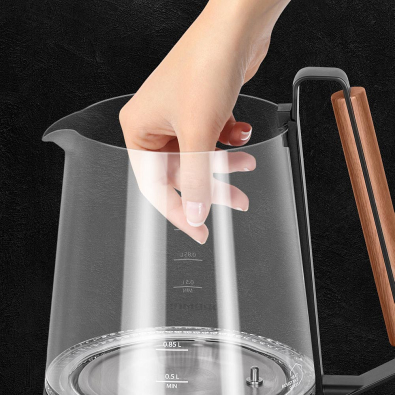 Нагревает воду быстро, колба вместительная. Управление нагреванием осуществляется с подставки удобными сенсорными кнопками, а не с корпуса — всегда можно посмотреть какую температуру выбрала. Температурных режимов шесть, для различных видов чая, нагрев держится долго.Сетка внутри корпуса не легко промывается под струей воды, даже губкой не приходится проходить."