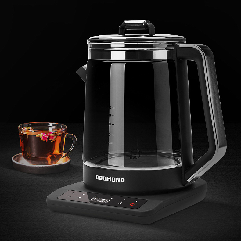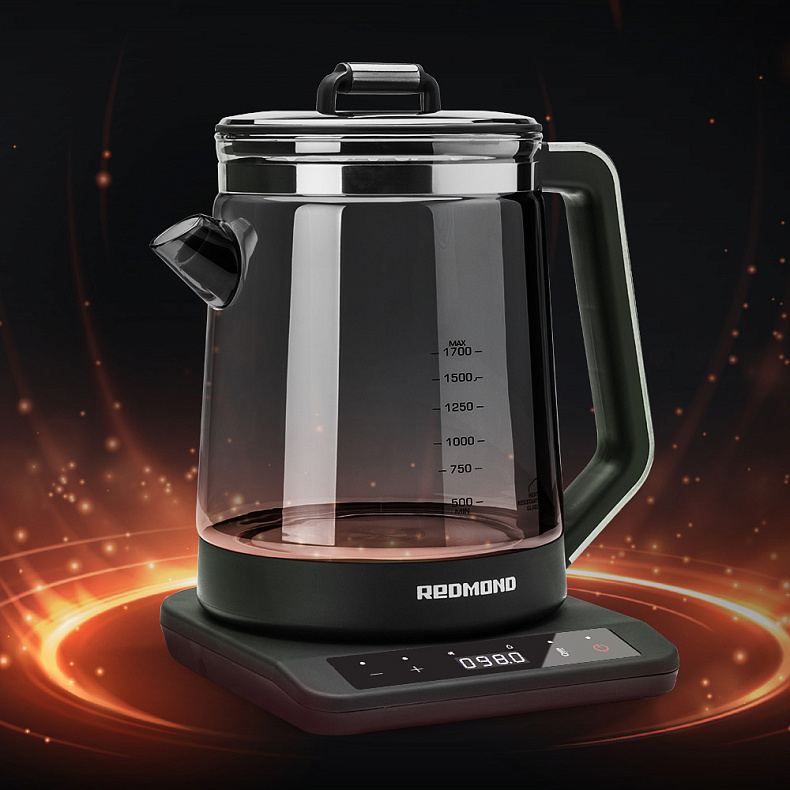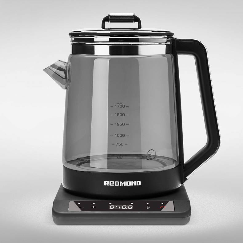 Чайник из тонированного термостойкого стекла отлично впишется в интерьер кухни в стиле лофт, модерн или хай-тек.