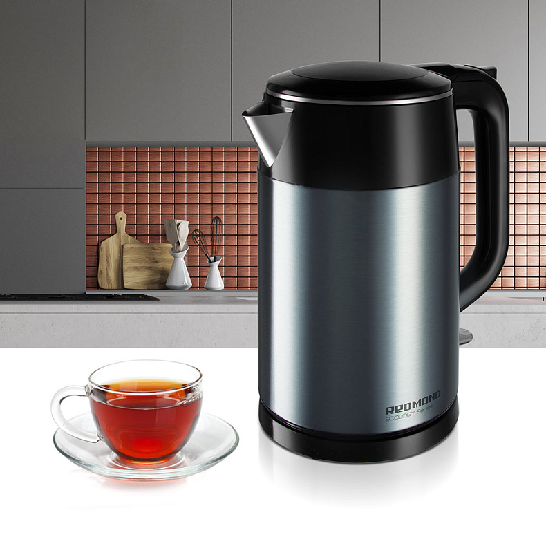 Двойные стенки создают эффект термоса — так вода дольше остается горячей, при этом снаружи чайник не нагревается. Если вы случайно дотронетесь до корпуса, вы не обожжетесь.