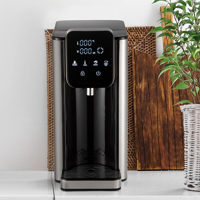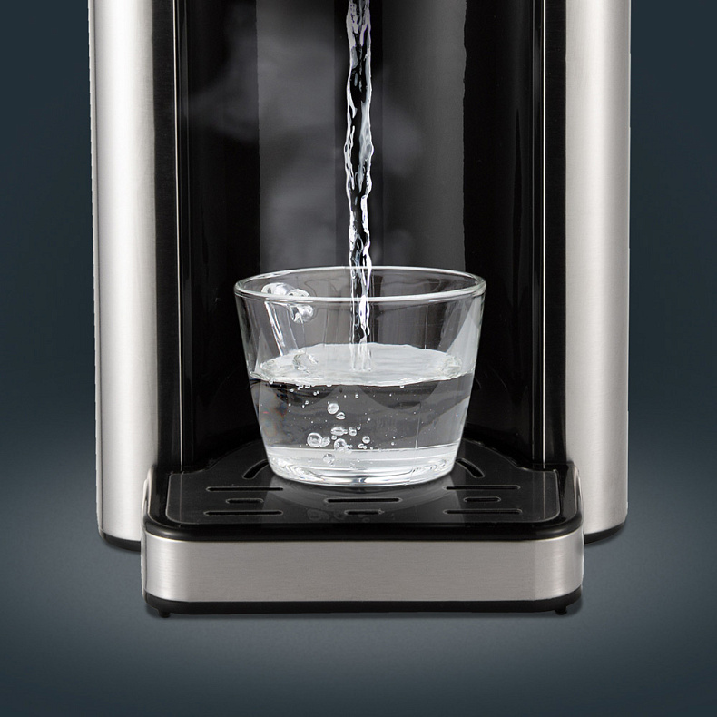 Проточный нагревательный элемент обеспечивает моментальную подачу кипятка. Не нужно ждать нагрева, достаточно просто подставить чашку и нажать кнопку.