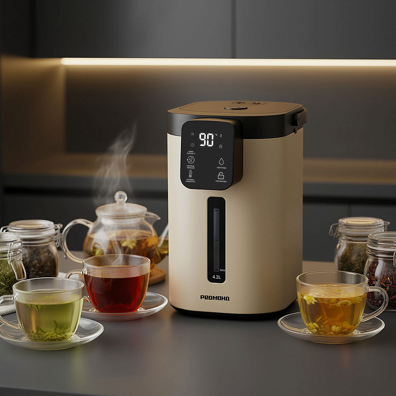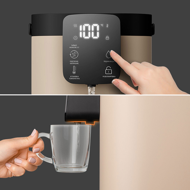 Термопот нагревает воду до максимальной температуры, а затем поддерживает ее на заданном уровне. Вода будет оставаться горячей в течение длительного времени, чтобы вы могли приготовить чай или кофе в любое удобное время.