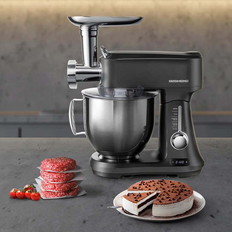 Кухонная машина легко измельчает жесткое мясо, смешивает большие объемы продуктов. Ее производительность — до 2,4 кг мяса в минуту, поэтому даже 10 килограммов фарша будут готовы за 5 минут.