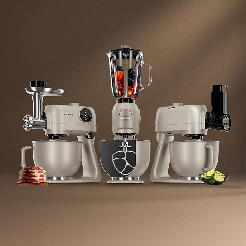 Цельнометаллический корпус делает устройство надежным, а еще тяжелым и устойчивым — оно не сдвинется с места даже при сильной вибрации, например при измельчении мяса. Кухонная машина в стильном дизайне станет дополнением любого интерьера.