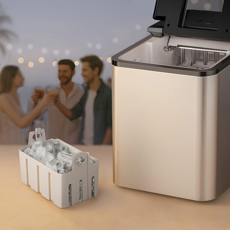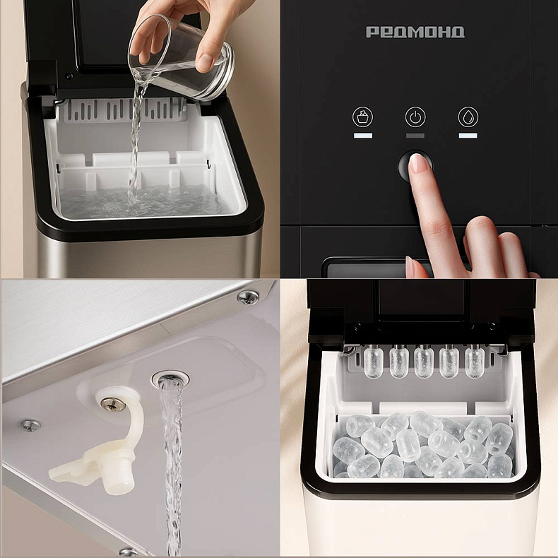 Не нужно ждать несколько часов для охлаждения напитков. Новая порция льда — 9 кусочков — будет готова уже через 8 минут. Ледогенератор будет повторять цикл работы, пока корзина не наполнится или вода не закончится.