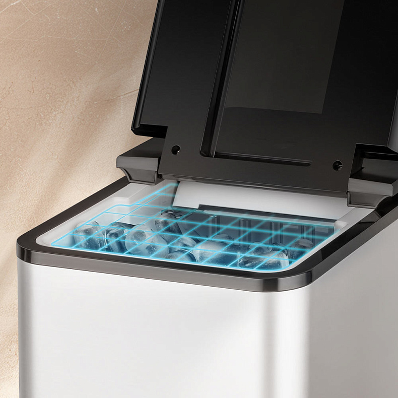 Ледогенератор оснащен ИК-датчиком, поэтому не нужно каждый раз запускать и останавливать заморозку. Как только корзина заполнится или закончится вода, устройство подаст звуковой сигнал и перейдет в режим ожидания.