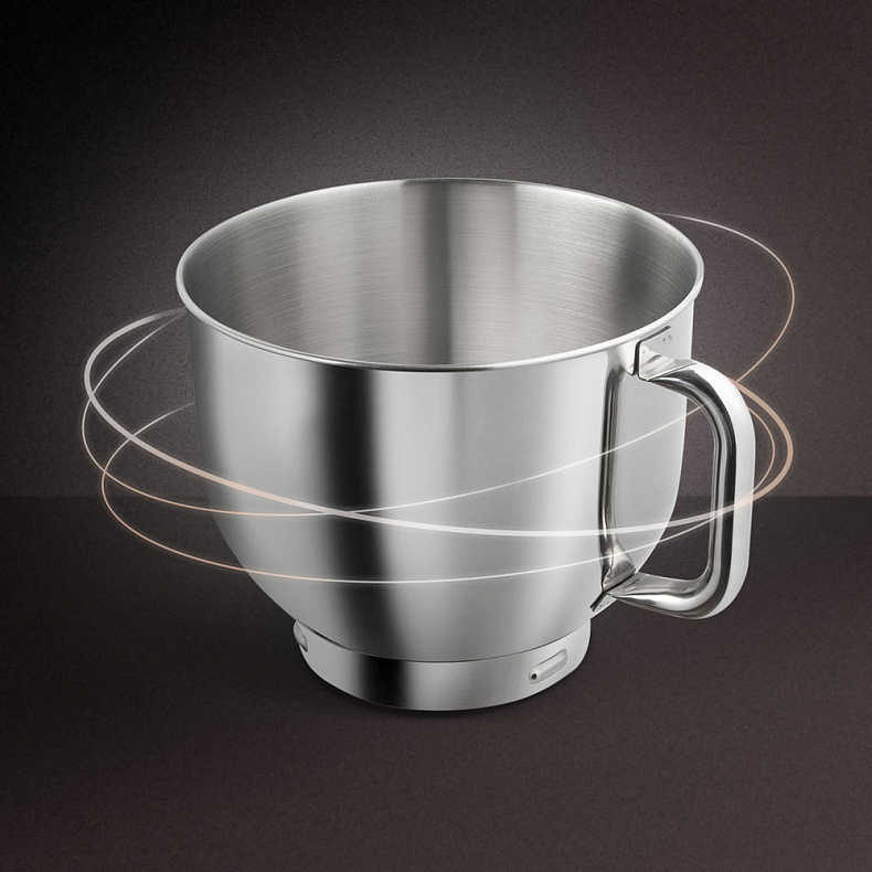 В 6-литровой металлической чаше можно смешивать и взбивать как холодные, так и горячие ингредиенты. А за ручку чаши удобно браться, когда надо перелить, например, готовое тесто в форму для выпечки.