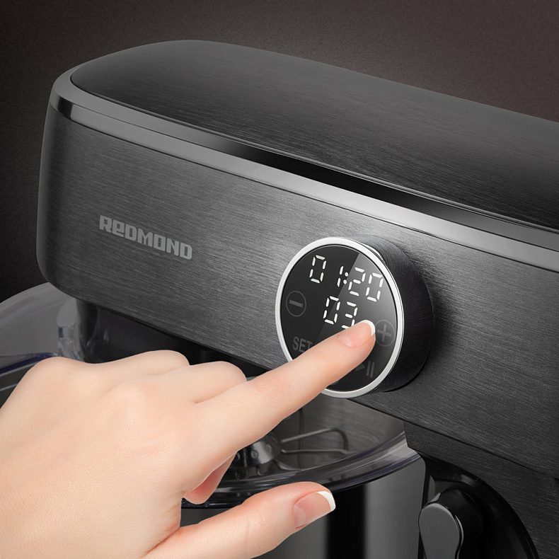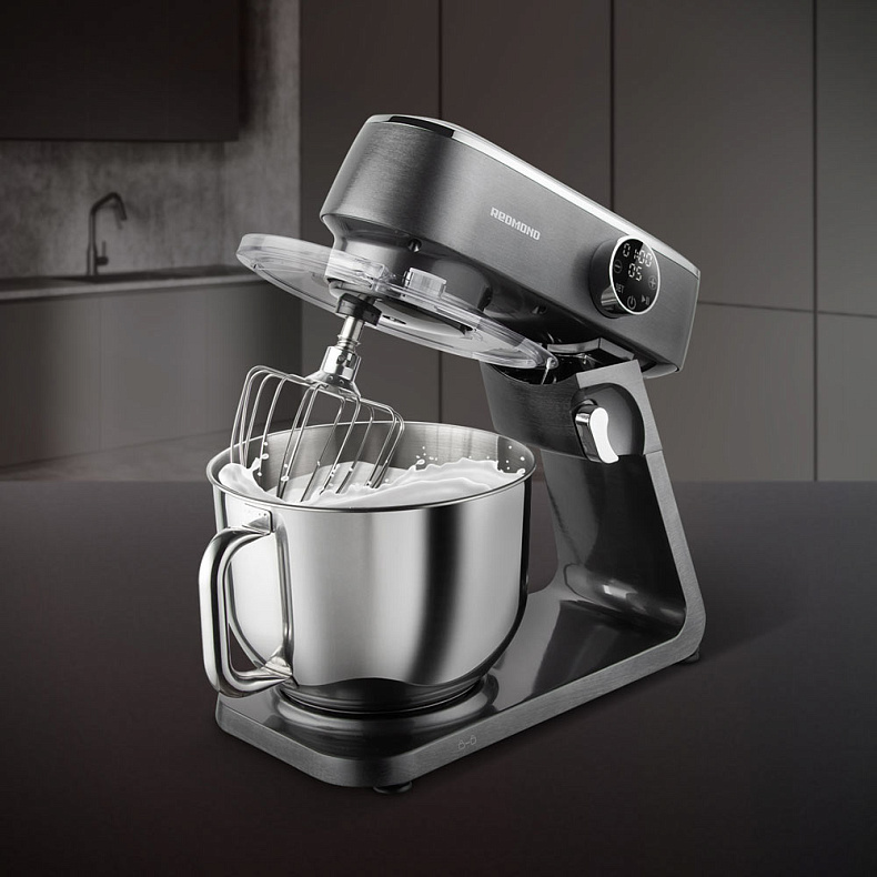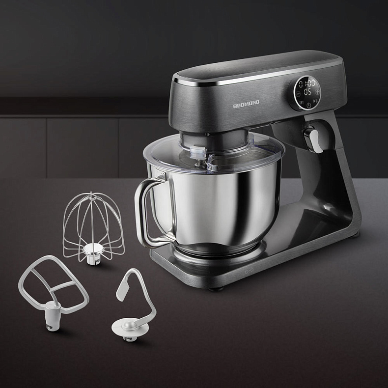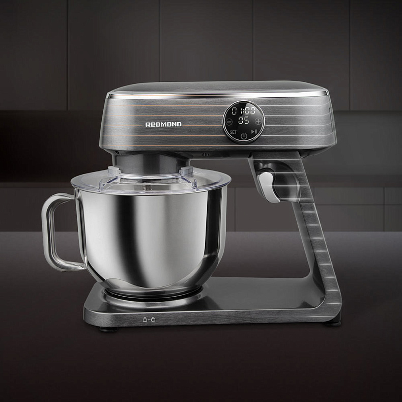 Я обратил внимание, что в этом миксере большая чаша имеет ручку, что довольно удобно, если её нужно куда-либо переносить. На сенсорной панели управления я устанавливаю таймер и нужную мне скорость, и хорошо, что ингредиенты не будут разбрызгиваться, так как крышечка защищает. Насадки справляются со взбиванием крема или приготовлением теста.