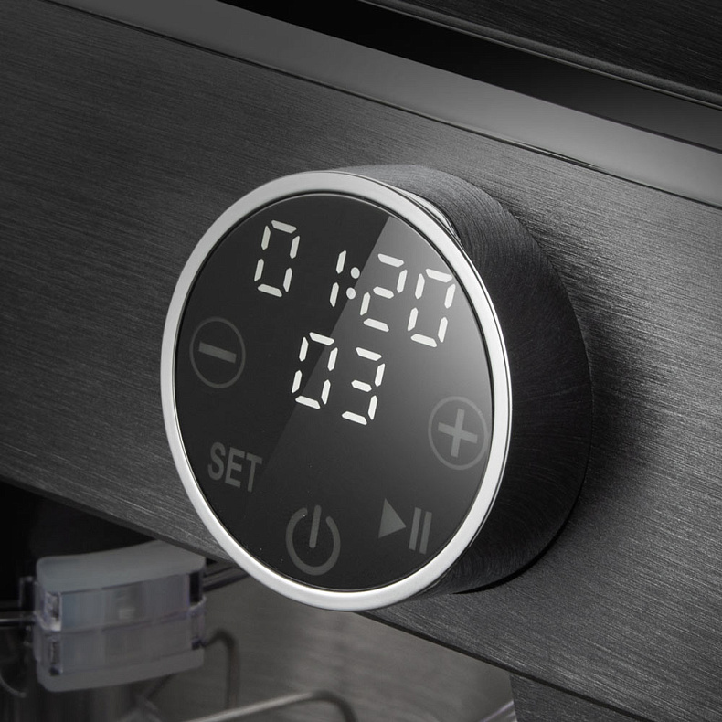 Одного прикосновения к сенсорным кнопкам достаточно, чтобы включить прибор, двух — выбрать и запустить процесс работы устройства. На светодиодном дисплее будут отображаться скорость вращения насадок и время работы.