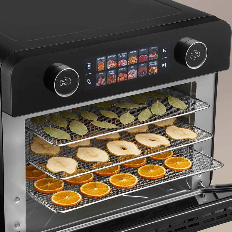 Шкаф духовой РЕДМОНД OV2100 легко заменит дегидратор — просто используйте 3 решетки для сушки фруктов и овощей из комплекта. Готовьте домашние чипсы, сушите яблоки, травы и грибы без хлопот. Все естественно и без добавок.