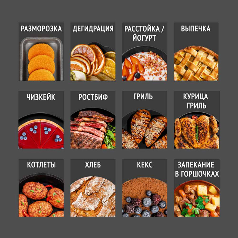 Если нужен быстрый результат — выберите автоматическую программу, прибор сам подберет параметры готовки для каждого блюда. Разморозка, расстойка, йогурт, выпечка, курица-гриль, котлеты и запекание в горшочках — все готовится автоматически и точно. Вам больше не придется контролировать процесс: технология обеспечивает равномерное пропекание, сочность и стабильный результат.