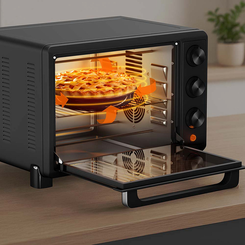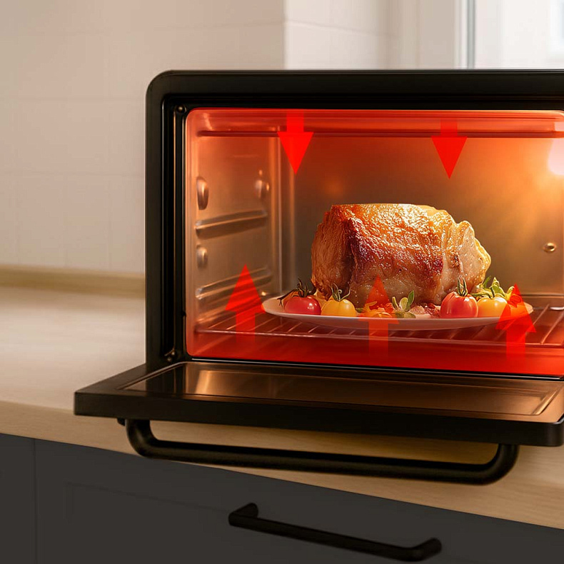 Духовой шкаф объемом 30 литров — оптимален для любой кухни. Шкаф компактный снаружи, вместительный внутри. Вы можете готовить сразу несколько блюд для всей семьи или гостей за один раз. Это экономит время и делает процесс готовки удобнее.