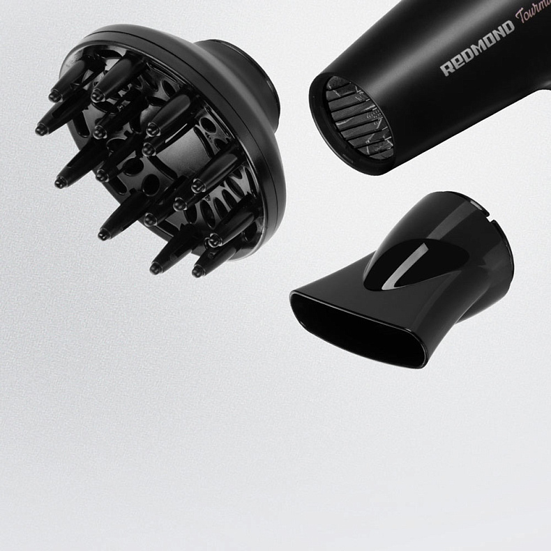 В комплект входят две удобные насадки. Насадка-диффузор равномерно распределяет поток воздуха, придавая объем у корней и подчеркивая естественную структуру локонов. Насадка-концентратор формирует направленный поток воздуха для точной укладки, идеально подходит для выпрямления и придания формы прическе.