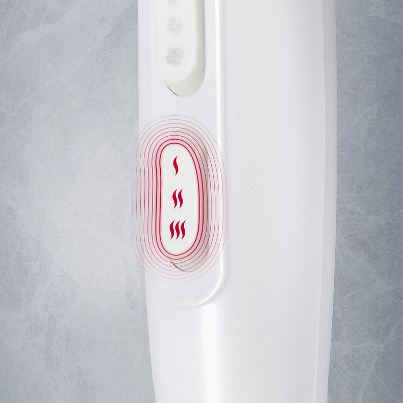 У фена 3 режима работы, среди которых легко подобрать подходящий именно для вашего типа волос. Установить уровень нагрева можно с помощью удобного переключателя на ручке.