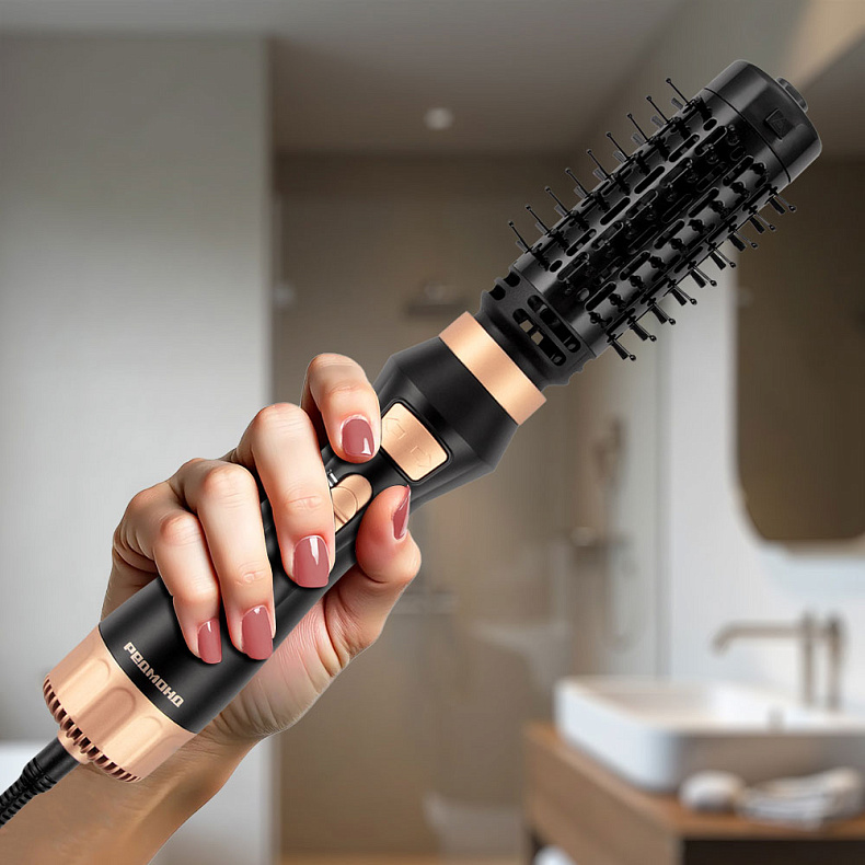 С помощью специальной кнопки вы можете регулировать вращение насадки в левую и правую стороны. Это поможет зафиксировать волосы в нужном направлении без лишних движений.