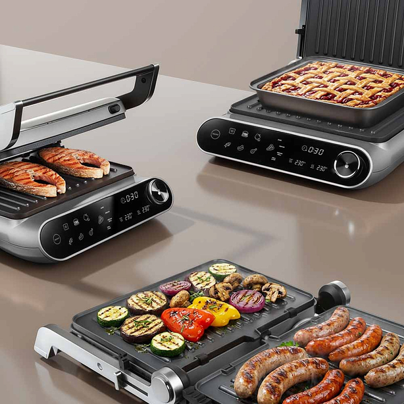Многофункциональное устройство заменит барбекю, гриль и духовку. Прибор позволяет готовить широкий ассортимент блюд — от сочных стейков, рыбы и овощей до горячих закусок и ароматной выпечки. Один прибор заменяет сразу несколько кухонных устройств, экономя место и расширяя ваши кулинарные возможности.