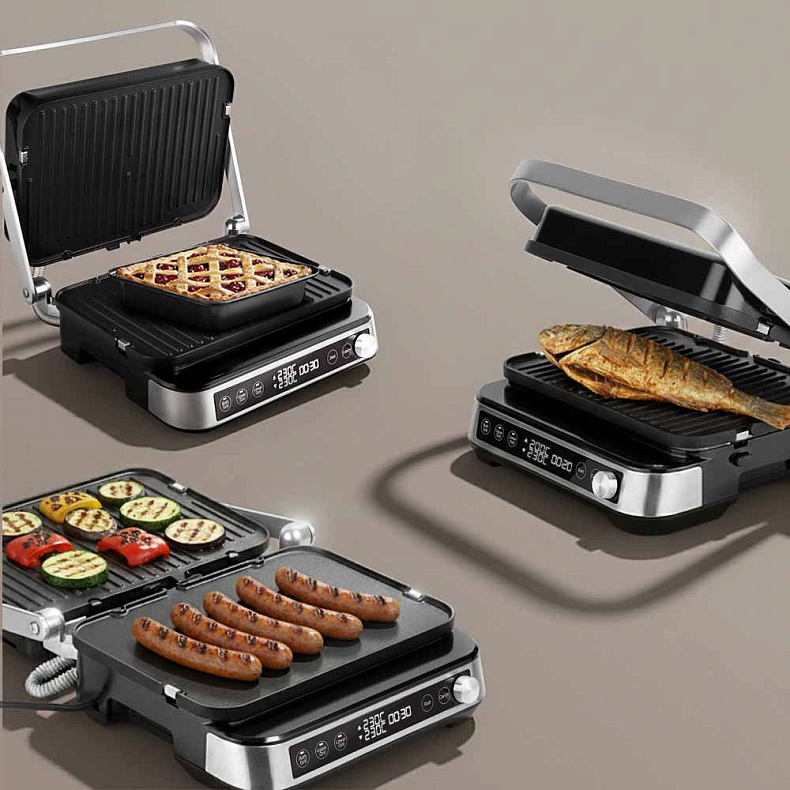 РЕДМОНД GM304 объединяет функционал трех приборов: жарка на гриле, запекание как в духовке и приготовление на раскрытых панелях в режиме барбекю. На одном устройстве можно создавать полноценный ужин: от стейков и овощей до горячих сэндвичей и закусок.
