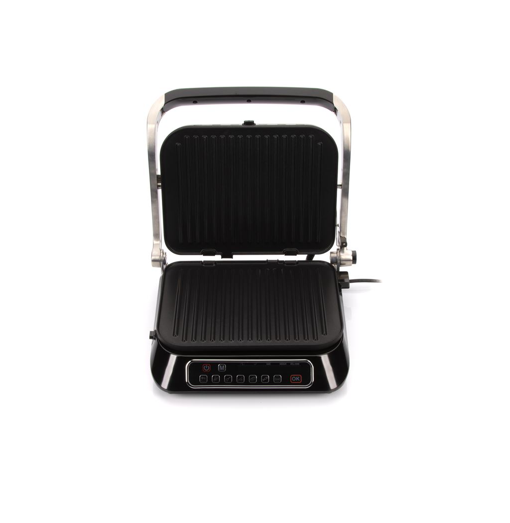 Раскройте гриль на 180° и используйте его как барбекю-жаровню. Площадь для приготовления увеличится в два раза! Вы можете на одной стороне гриля поджарить цукини, баклажаны, шампиньоны, а на другой – кусочки мяса, птицы или котлеты для бургеров. Уже спустя несколько минут, вы сможете побаловать себя и друзей сытным основным блюдом и полезным гарниром.