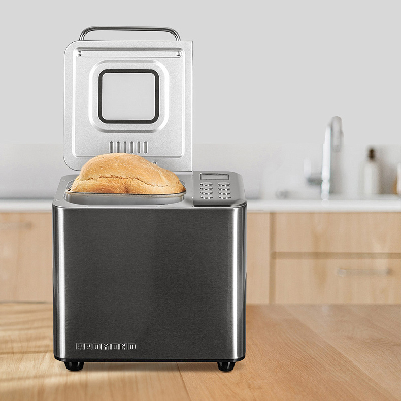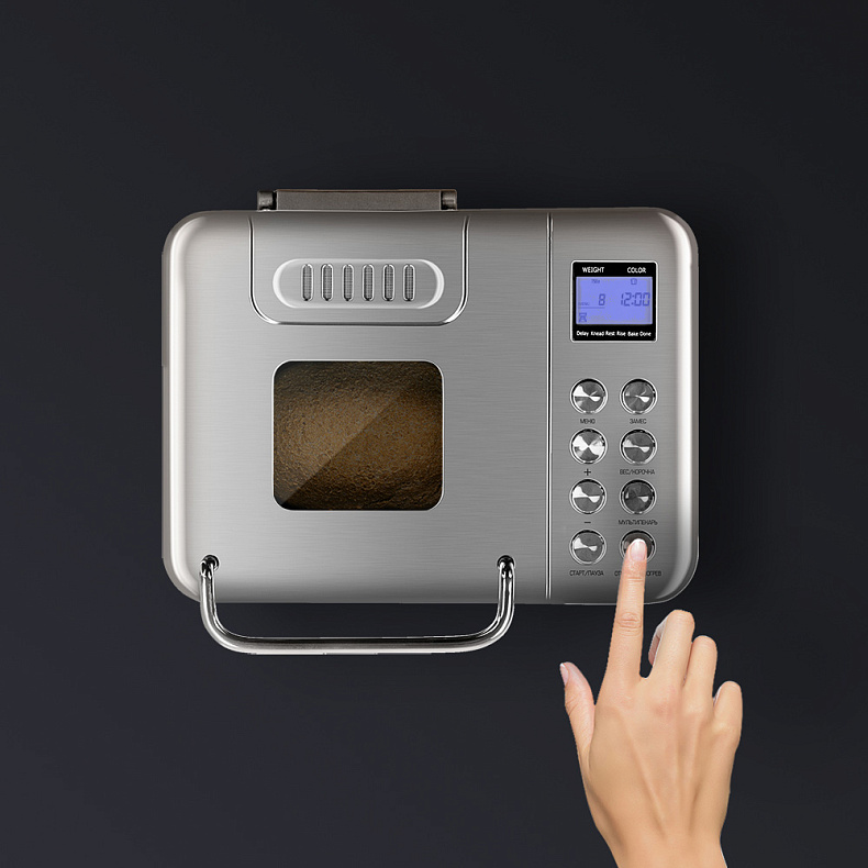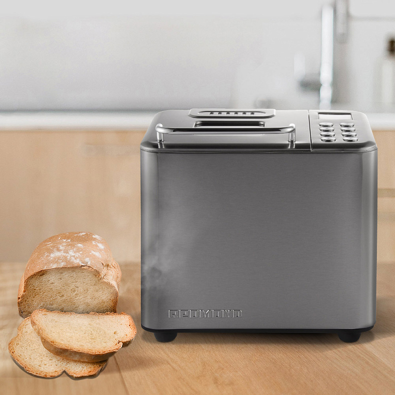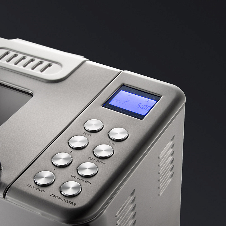 Металлический корпус меньше подвержен механическим повреждениям. Хлебопечь выглядит стильно — и будет хорошо смотреться на любой кухне.