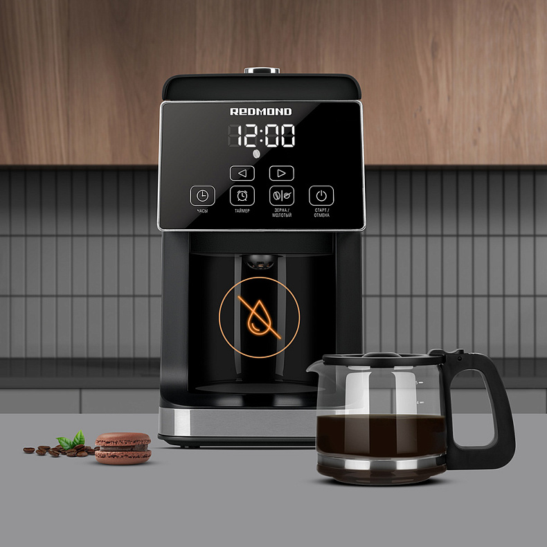 Капельная кофеварка РЕДМОНД CM703 — современное устройство для любителей хорошего кофе с встроенной кофемолкой, сенсорным экраном и функцией автоподогрева. Наслаждайтесь вкусным и ароматным напитком каждое утро.