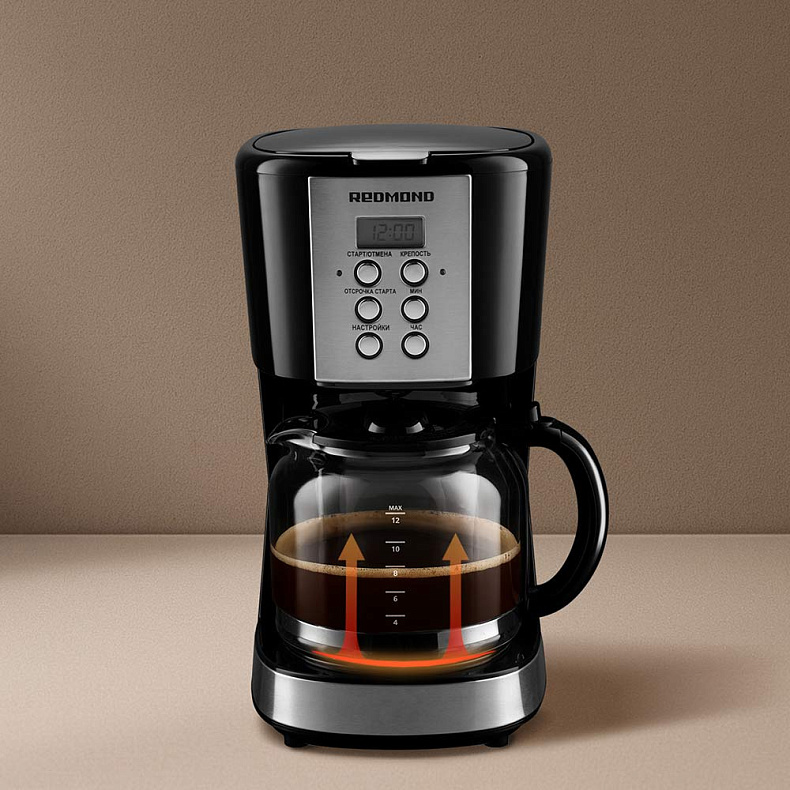 Ваш кофе останется горячим даже через 40 минут после готовности. Если он остыл, можете нагреть его еще раз, включив специальный режим. Через 15–20 минут кофе в кувшине повторно нагреется.