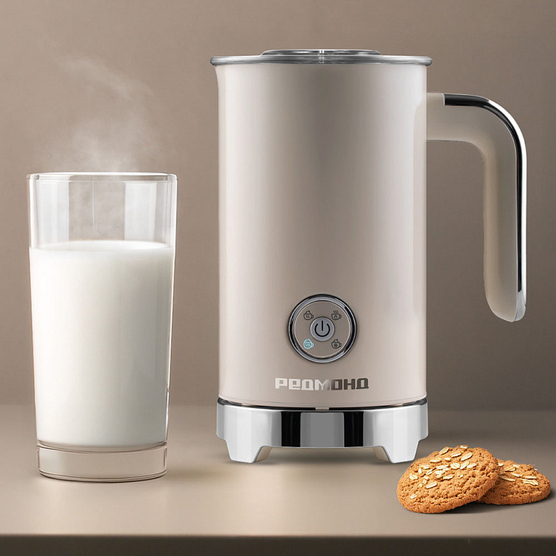 У капучинатора двойные стенки с воздушной прослойкой, поэтому он как термос долго сохраняет тепло. Адиабатный корпус помогает избежать случайных ожогов — ведь внешняя часть устройства всегда остается холодной.