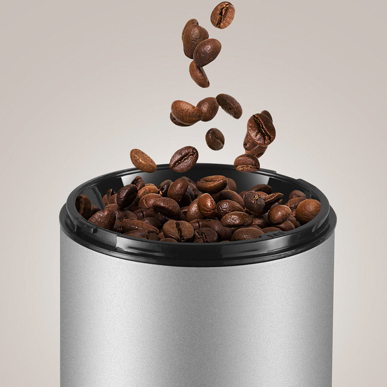 Ножи и емкость CG805 выполнены из нержавеющей стали, которая не впитывает запахи и не влияет на вкус кофе. Лезвия из прочного материала долго прослужат даже без дополнительной заточки и результат помола будет отличным.