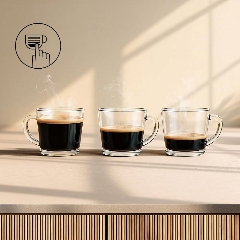 Регулируйте объем порции кофе, чтобы адаптировать процесс приготовления под ваши предпочтения. Прибор запомнит установленные параметры, не придется задавать их повторно.