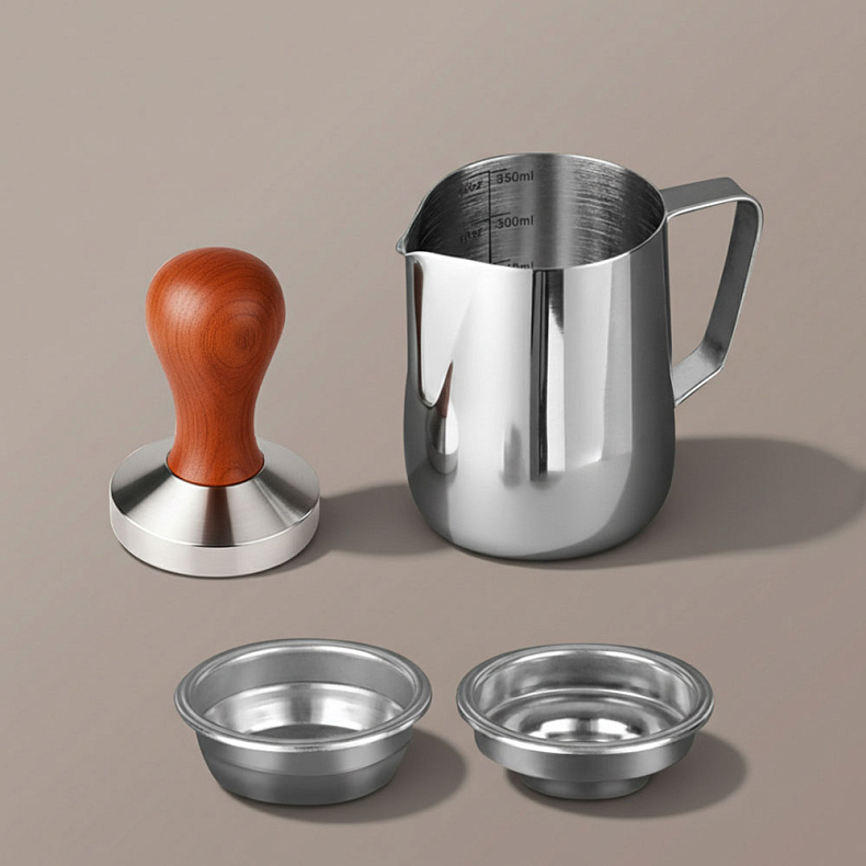 В комплект входят профессиональные инструменты — питчер, темпер и фильтры для эспрессо и двойного эспрессо. Эти аксессуары созданы из прочной нержавеющей стали и рассчитаны на длительное использование. Они помогут вам почувствовать себя настоящим бариста.