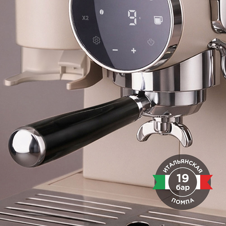 Итальянская профессиональная помпа с давлением 19 бар обеспечивает полноценную экстракцию, раскрывая все оттенки вкуса и формируя плотную крема, характерную для настоящего эспрессо. Благодаря высококачественным компонентам каждая чашка получается сбалансированной и выразительной — как у лучших бариста Италии.