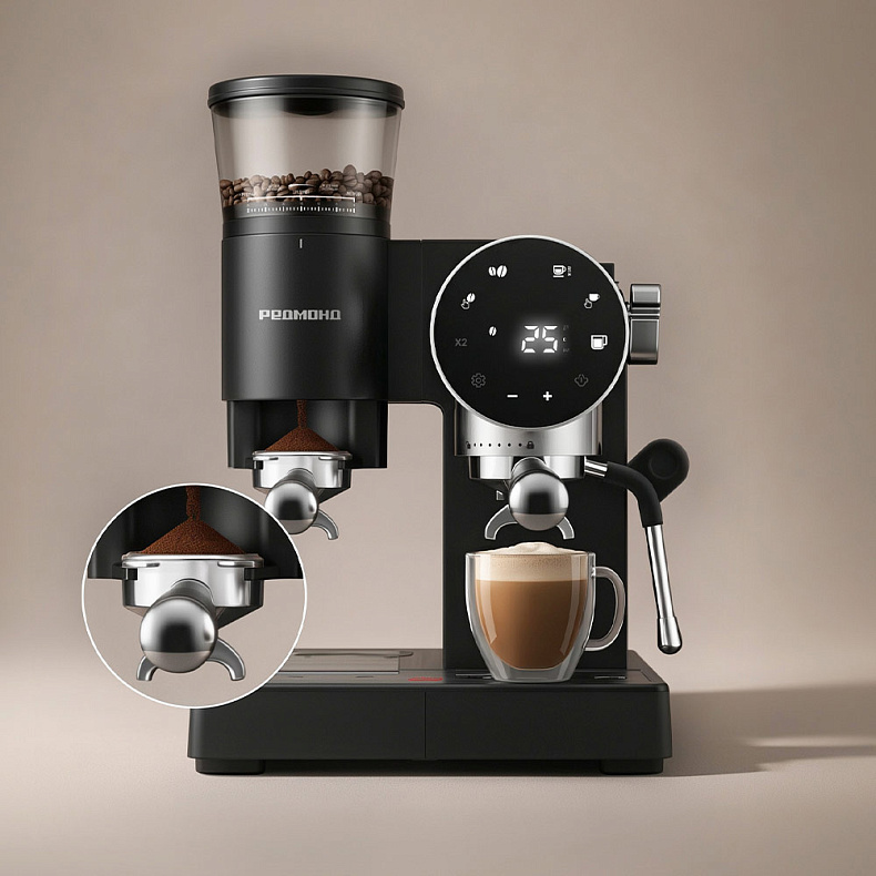 Кофейная станция РЕДМОНД CM741 — профессиональный уровень приготовления кофе. Благодаря встроенной кофемолке зерна измельчаются непосредственно перед приготовлением, поэтому вы получите более насыщенный и ароматный напиток. 30 уровней помола позволяют точно настроить вкус под разные сорта зерна, а итальянская помпа с давлением 19 бар обеспечивает стабильную экстракцию и плотную крема. CM741 приготовит эспрессо, американо, айс-кофе и напитки с молочной пенкой. Капучинатор, настройка объема порции и одновременное приготовление двух чашек делают процесс удобным и быстрым. Компактный стильный корпус и продуманная компоновка элементов упрощают ежедневное использование, а вместительные резервуары для воды и зерен добавляют комфорта.